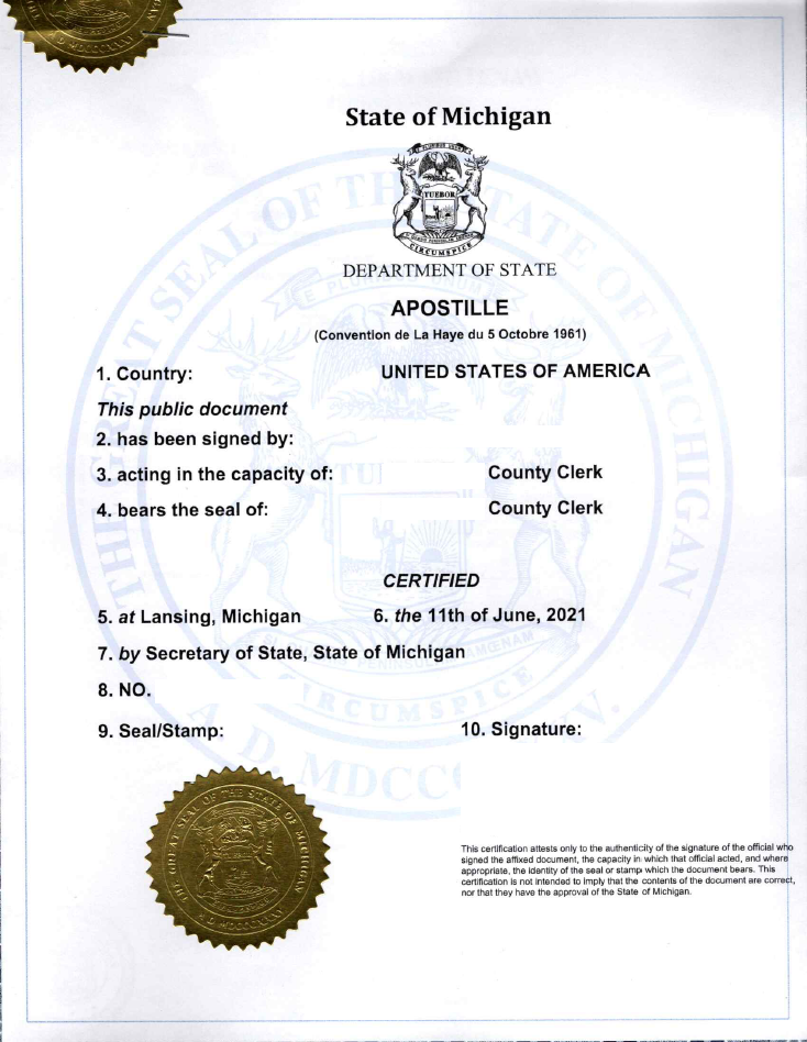 - US Apostille issuance on notarized documents